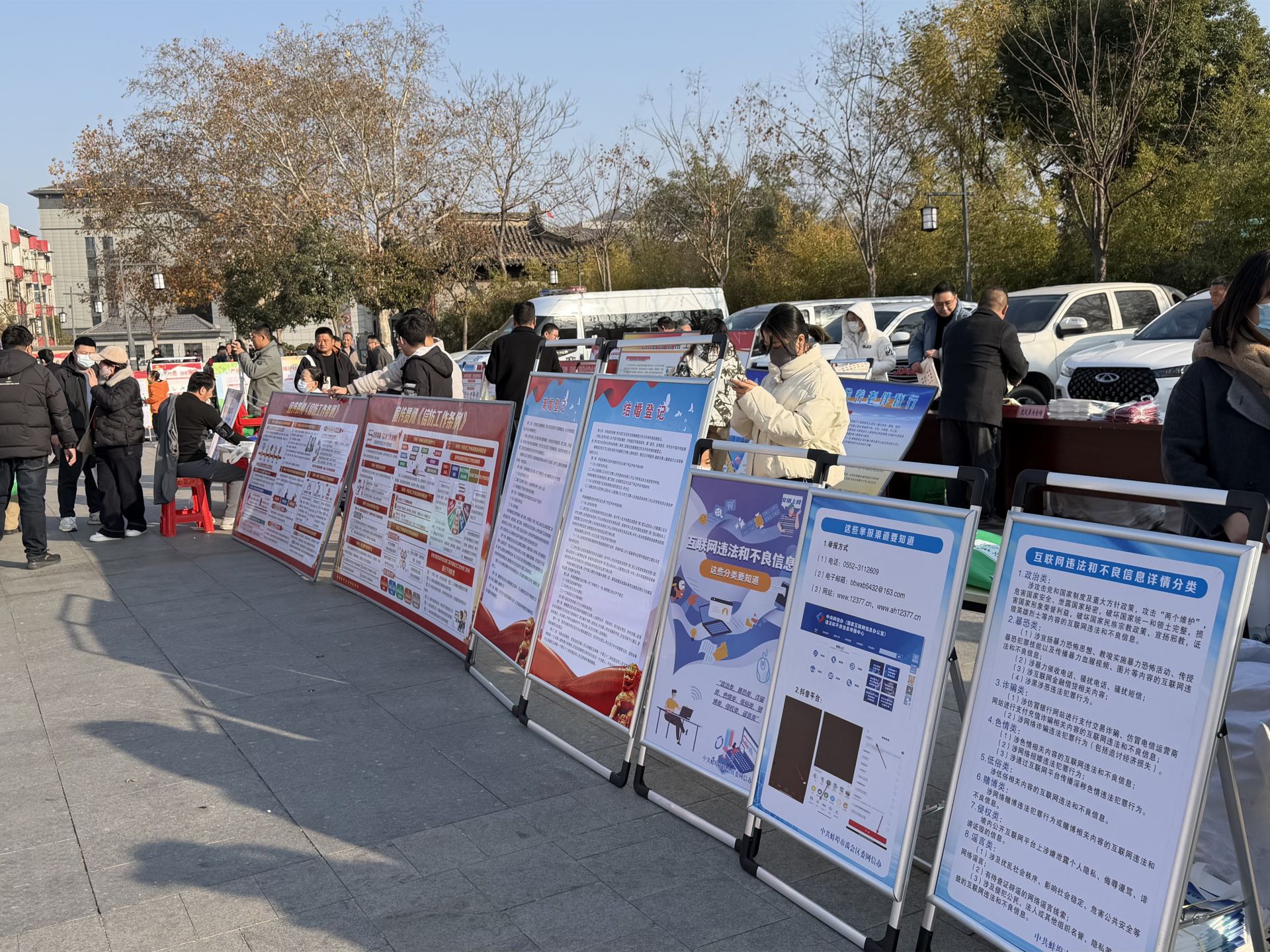 为进一步提升居民的上网用网意识和安全防范意识,积极营造全民参与平安建设的浓厚氛围,12月6日下午,禹会区委宣传部(网信办)联合公检法司等政法部门、20余个行政主管单位及乡镇街道、热心企业等基层单位,在张公山公园北门广场开展互联网违法和不良信息网络举报、平安建设联合宣传活动。