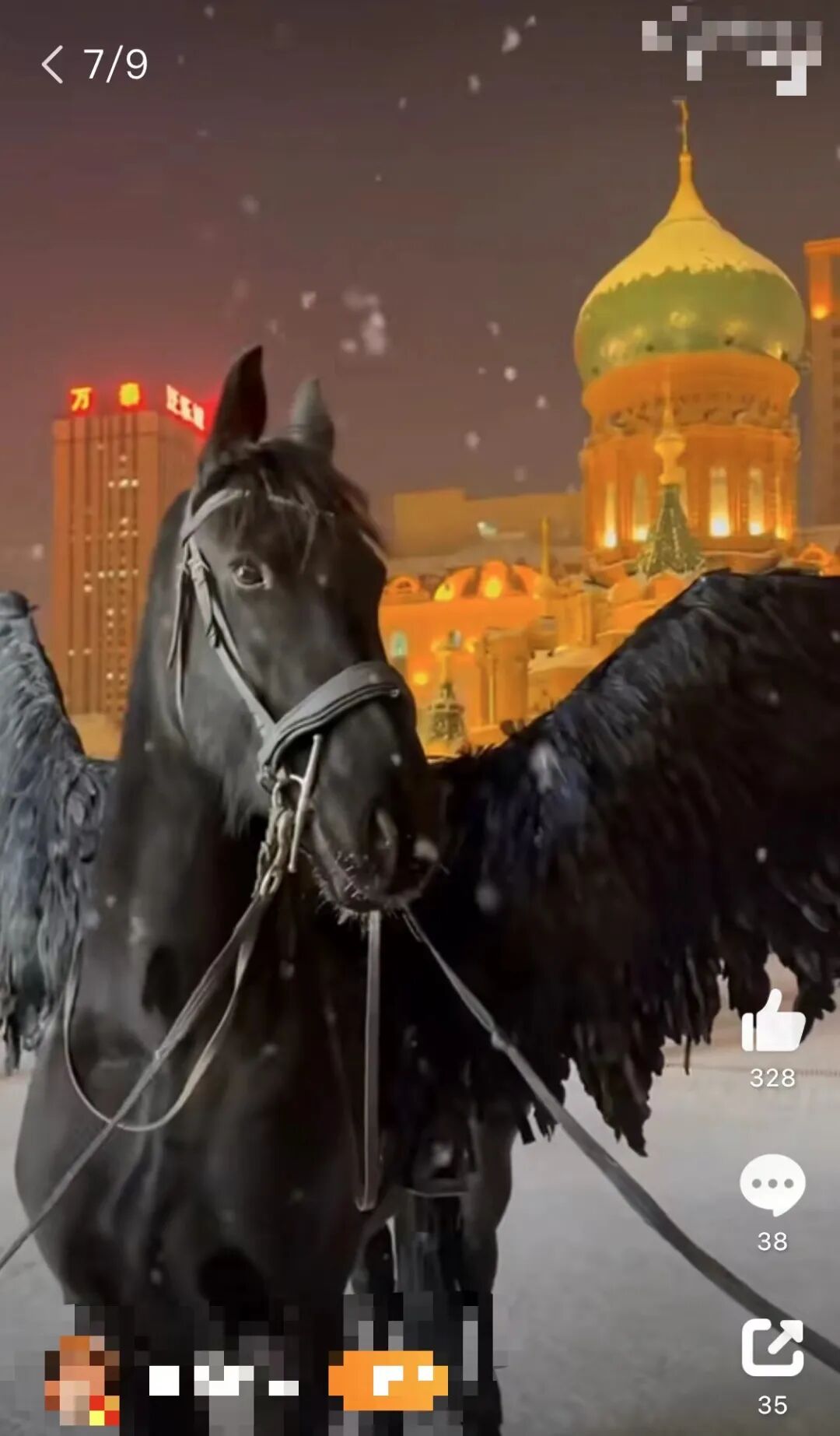 游客想拍带月亮的雪景,于是索菲亚大教堂上空升起了一轮人造明月;南方人怕冷,于是街边建起了“游客温暖驿站”,免费提供暖气、热水;游客想体验西洋风情,连马都被插上了黑翅膀cos“天马”......就连本地人都说“尔滨,你让我有点陌生了”。